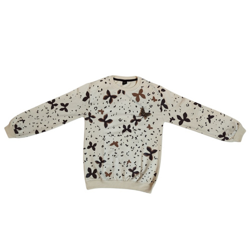 ست اسپرت دخترانه سویشرت طرحدار و شلوار قهوهای فاق بلندست دخترانه سویشرت کرم طرحدار و شلوار قهوهای گشاد، مناسب استایل راحتی روزمره